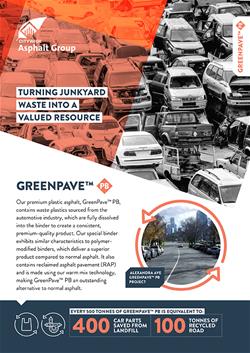 Our premium plastic asphalt Greenpave™ PB makes good re-use of plastics sourced from the automotive industry.